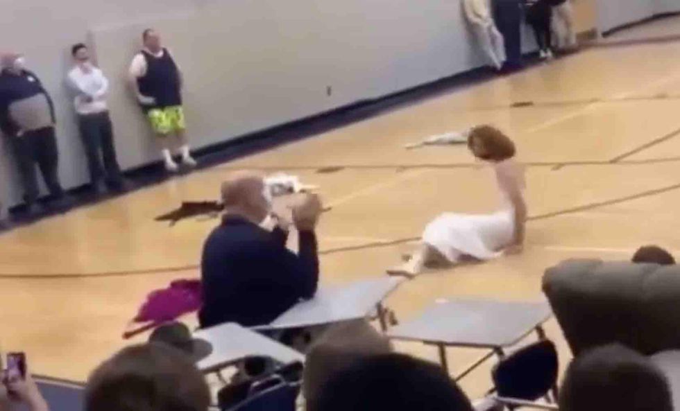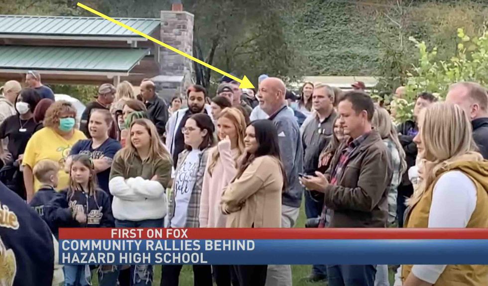 Kentucky sports journalist Nate Bryan posted the video to Twitter and said Hazard High School Principal Donald "Happy" Mobelini — who's also mayor of the eastern Kentucky city — watched the action from the "front row."