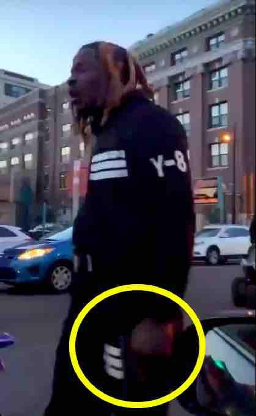 Then the enraged rider walks away from the SUV apparently toward the group with whom he'd been traveling and shouts, "Let me see that!" The biker then reaches out and appears to grab a gun from someone not visible in the clip: