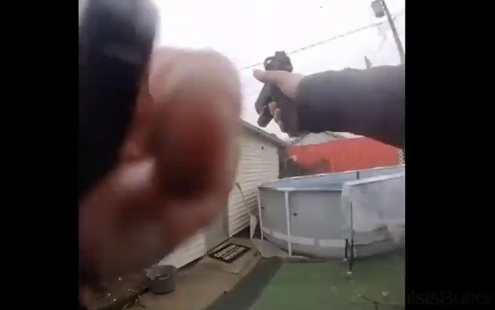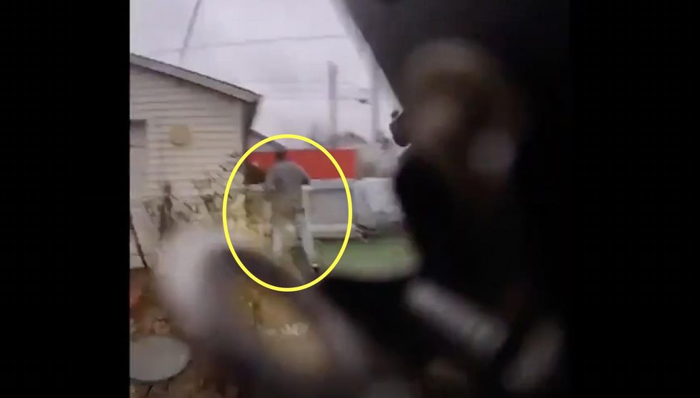 Video shows Medlock running off to a neighboring residential property and entering a detached garage as the officer chases him with his gun drawn.