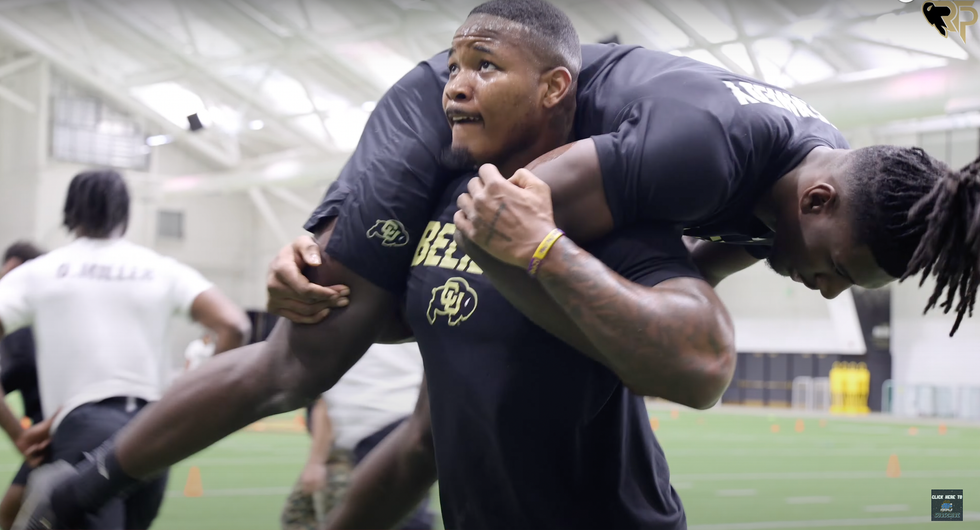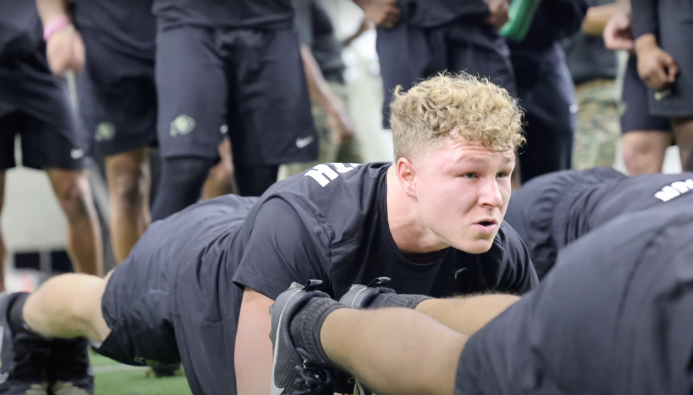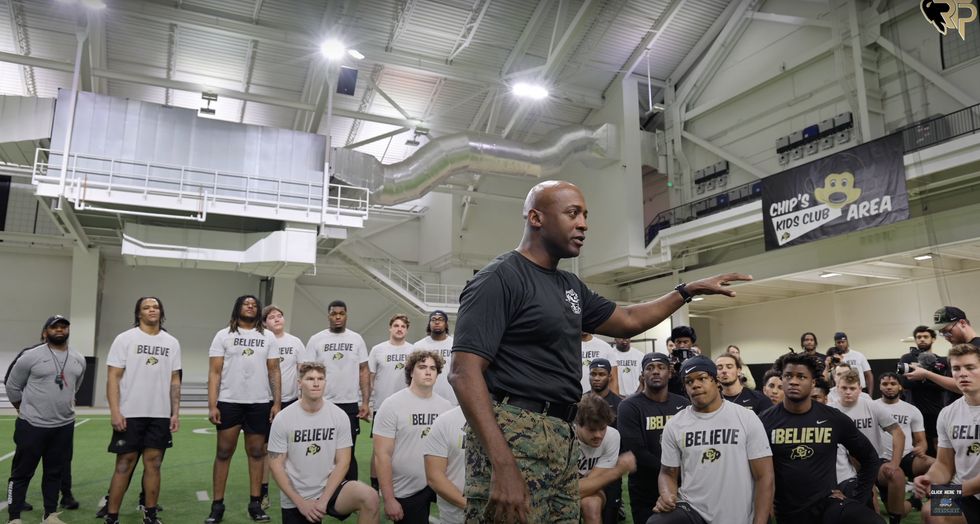 Video captured U.S. Marines showing Deion Sanders' University of Colorado football players this week just how intense an off-season workout can get, BroBible said.