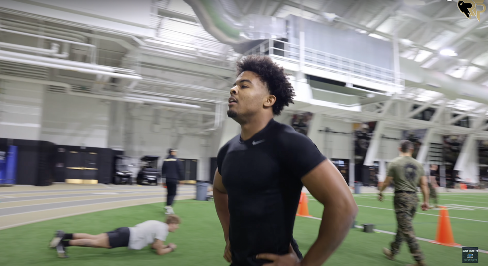A 45-minute video captured the Marines putting the players through a "combat fitness test" with physical challenges that included "maneuver under fire, ammo can presses, air squats" as well as wind sprints.