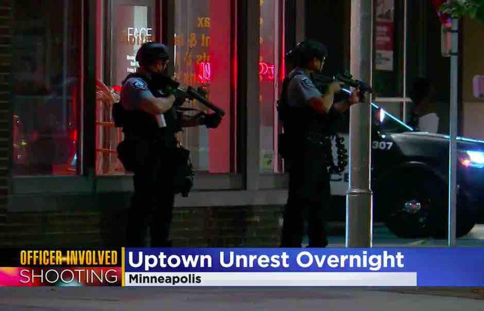 WCCO added that during the unrest that followed the shooting at least one dumpster fire was seen on a street and several store windows were broken as police in riot gear patrolled the area.