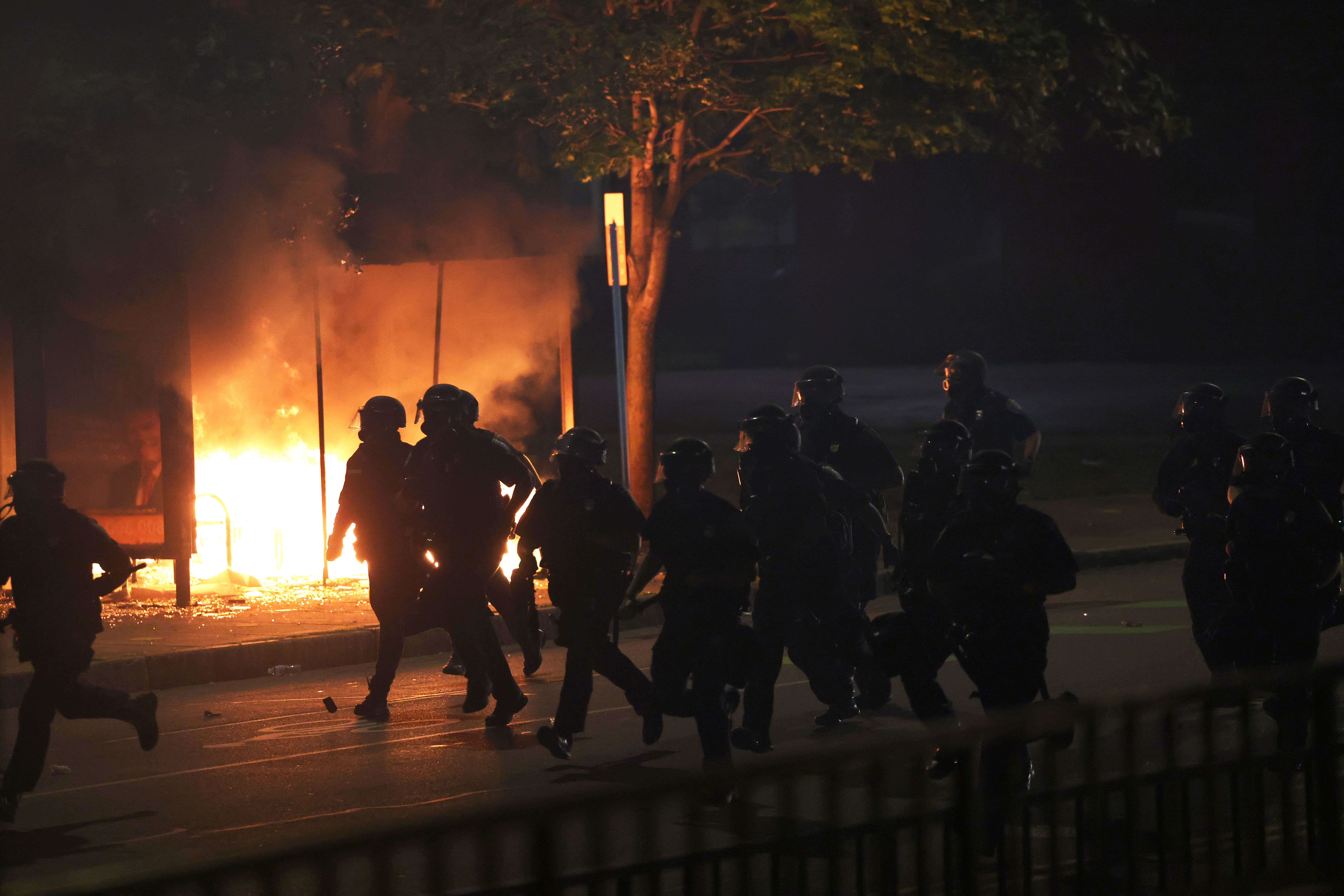 Rioters later also reportedly began taking to residential areas, and could be seen climbing on roofs. Demonstrators reportedly set fire to at least one city bus stop during the overnight melee.