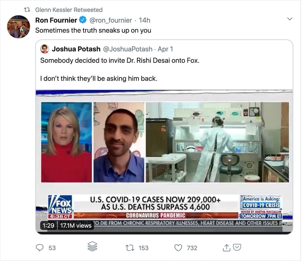 The video, popular on the left, showed infectious-disease physician Rishi Desai claiming that President Donald Trump should have acted sooner based on what was publicly known about the coronavirus in December.