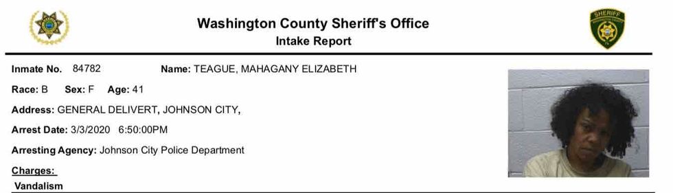 A WCYB follow-up story noted that Mahagany Teague, 41, was arrested arrested March 3 and charged with vandalism under $1,000 for allegedly using a rock to carve "white pride" into the sidewalk outside DC Fitness.