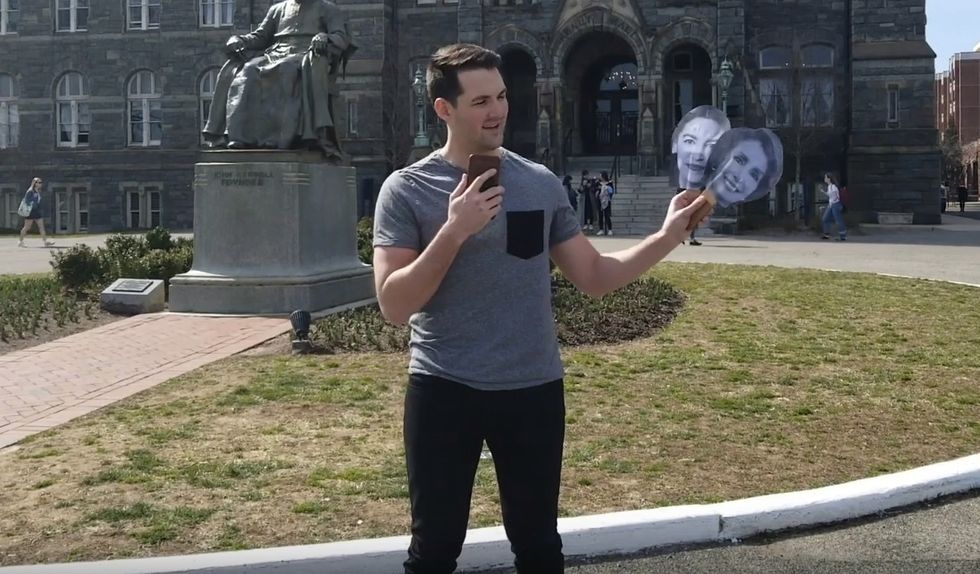 Phillips — armed with images of both politicians slapped on sticks — saw students most often pointing to the Ocasio-Cortez face: