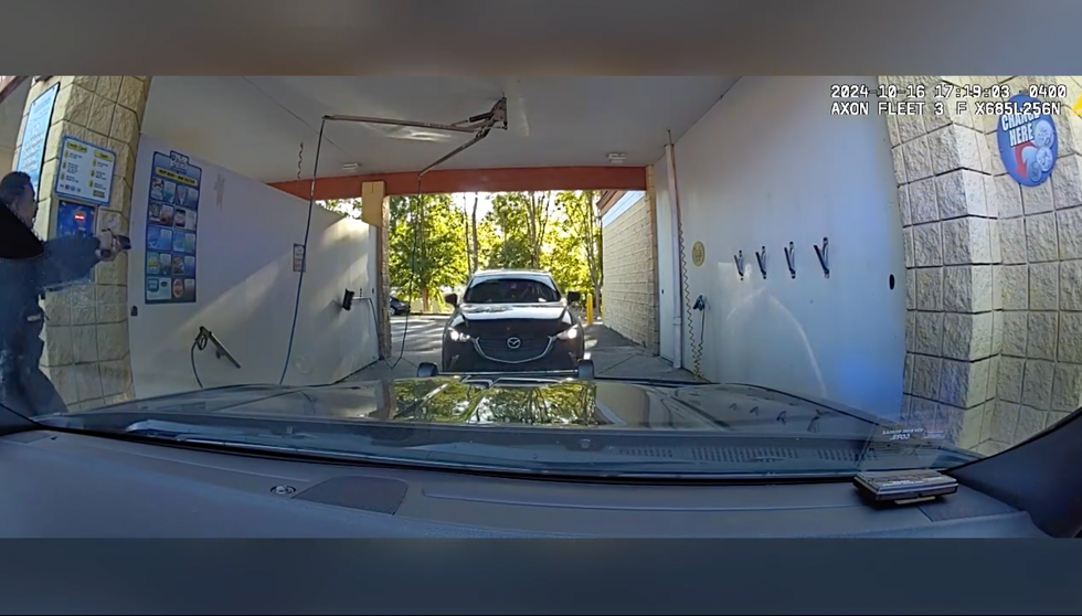 But the suspect backed out of the car wash bay and fled from police, after which a pursuit ensued.
