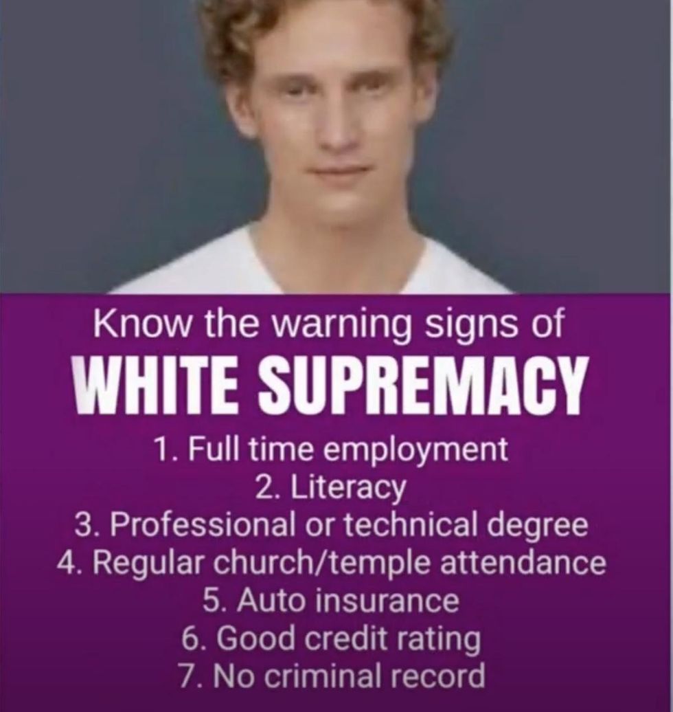 The meme was posted to the local Republican Party's Facebook page in June. The meme had an image of a white male and read, "Know the warning signs of White Supremacy."