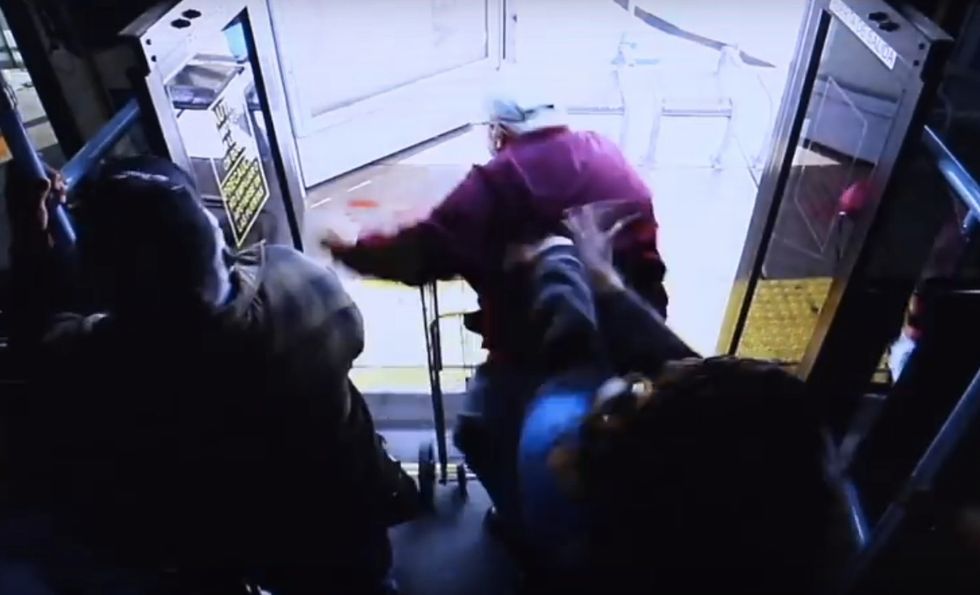 Police said Bishop then pushed Fournier, who was using a walker, out of the bus — and he landed on his head on the sidewalk, the station said.