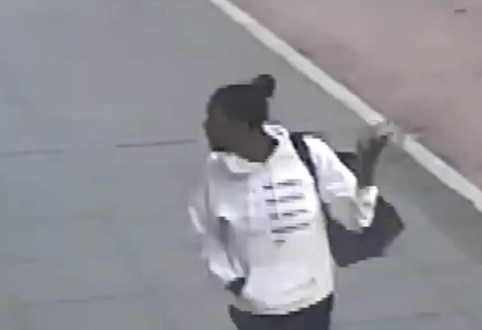 The suspect was wearing her hair up, was dressed in a white hoodie and black shorts, and was carrying a black duffel bag, the Post added.