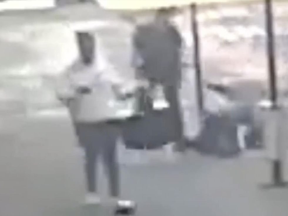 Video shows the suspect standing near a building, bending down to pick up a duffle bag, and then suddenly punching the victim in the side of her face as she walked by, the paper said.