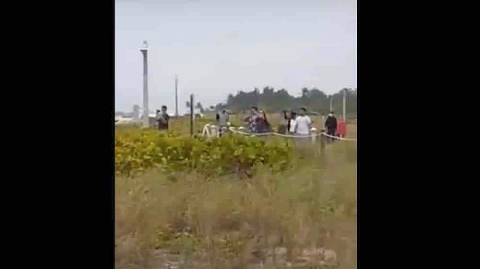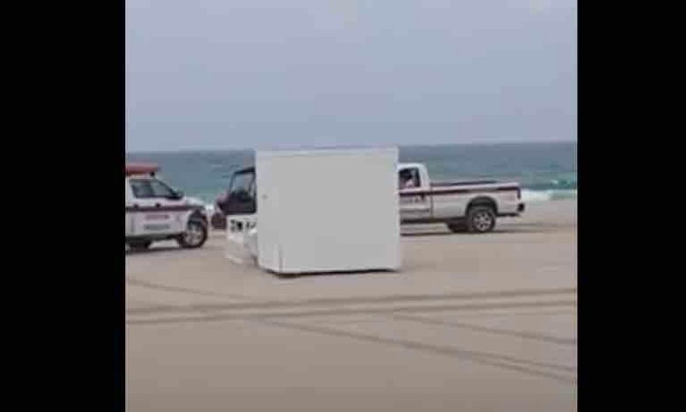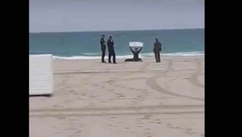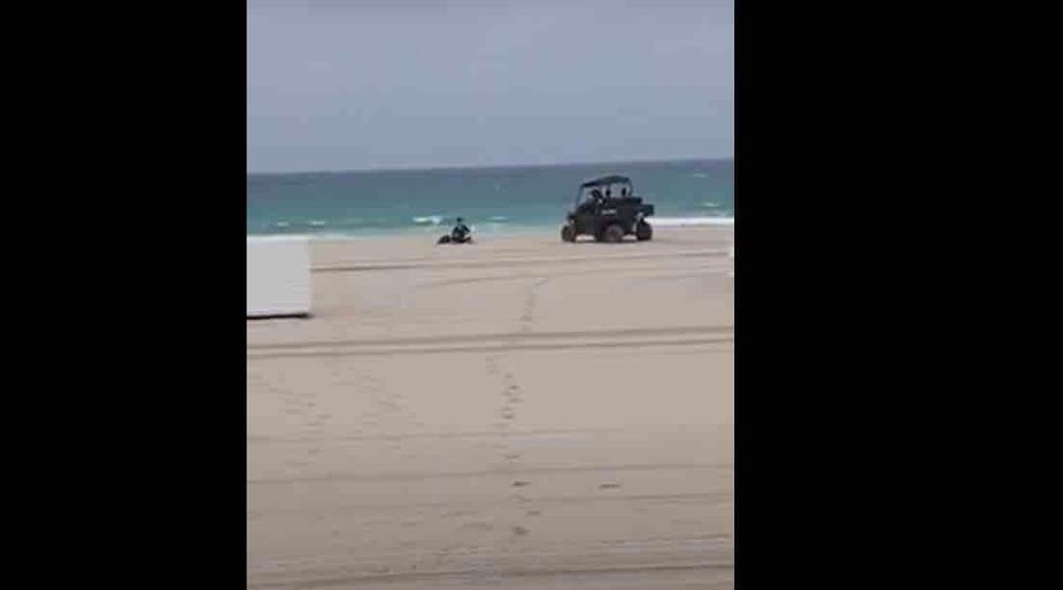 The entire event was captured on video by a man speaking to Falkenstine as she walked to the beach with her sign.