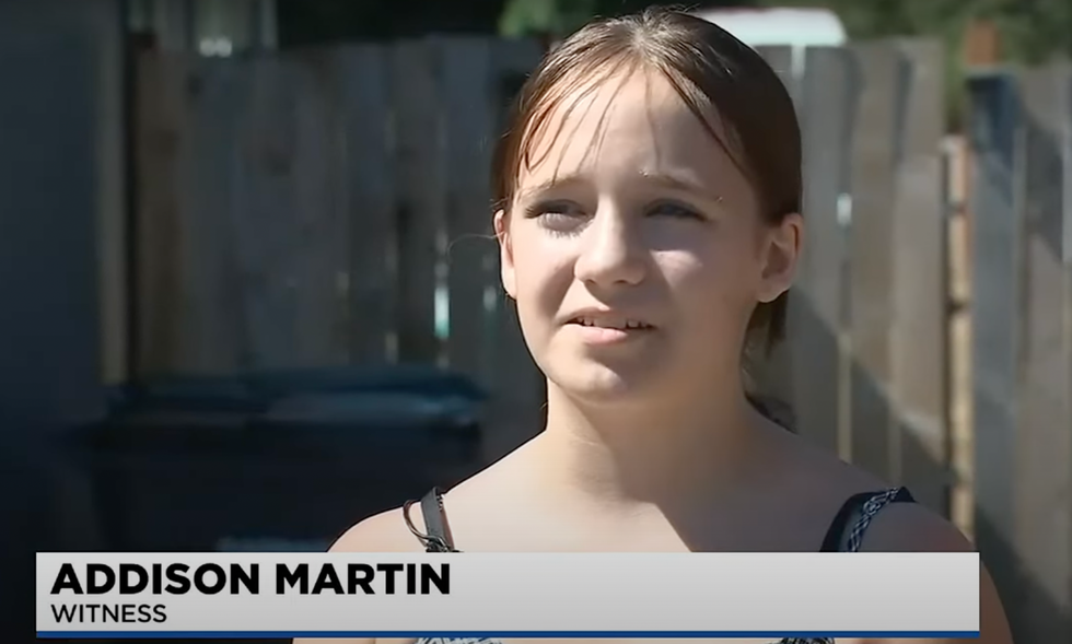 “I was shocked because I heard, like, banging on the door and the dogs barking,” Addison explained to KPTV. “And scared because I thought someone was trying to break in, and I saw my dad walk out and [talk] to her."