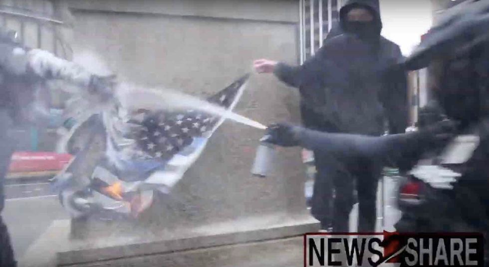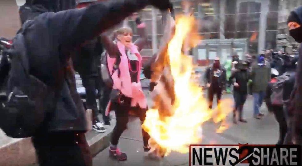 One militant actually yelled at the cop who doused the flames, "What the f*** is wrong with you?"