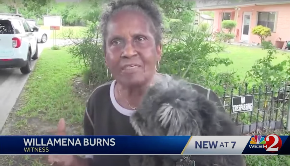 Witness Willamena Burns told WESH that as her dog "started barking, the bark got more aggressive. I got up and saw officers running on the side of my house into the back yard. So I went on my back porch, and they were all in the back yard with this female."