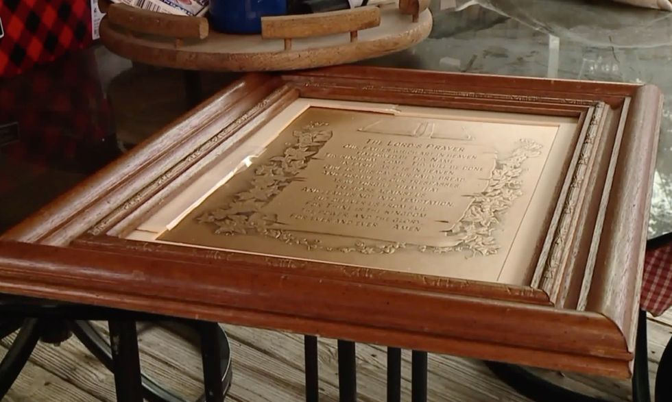 As it turned out, the couple found a bullet that had been fired into the side of their home but it was stopped by a framed photo of the Lord's Prayer.