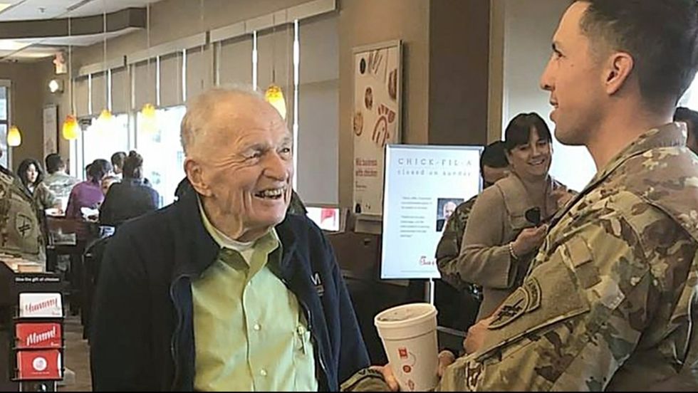 A few days ahead of his 92nd birthday, World War II veteran Edmund Rusinek celebrated by picking up $1,500 worth of meals for active-duty service members and their families at a Chick-fil-A in Rossmoor, California, the Orange County Register reported.