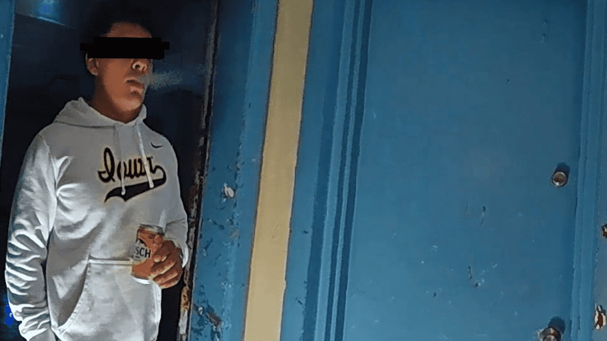 One male wearing a white Iowa hoodie — and apparently drinking a beer and vaping — is seen in the raw clip apparently making life difficult for police at the scene.