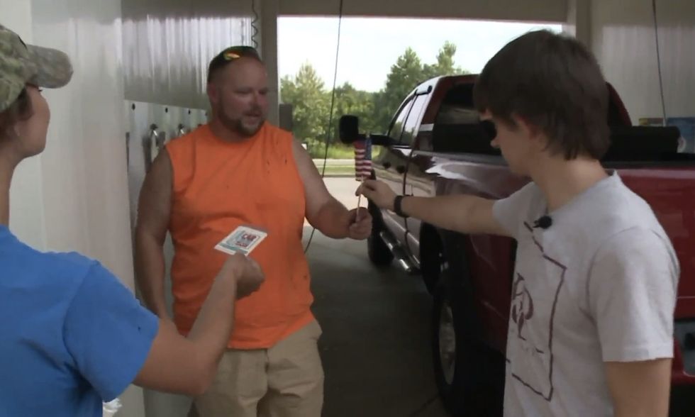 "I sent my daughter to Walmart to purchase more than 150 miniature American flags for Keaton to pass out to customers," Hoaglin added to the outlet.