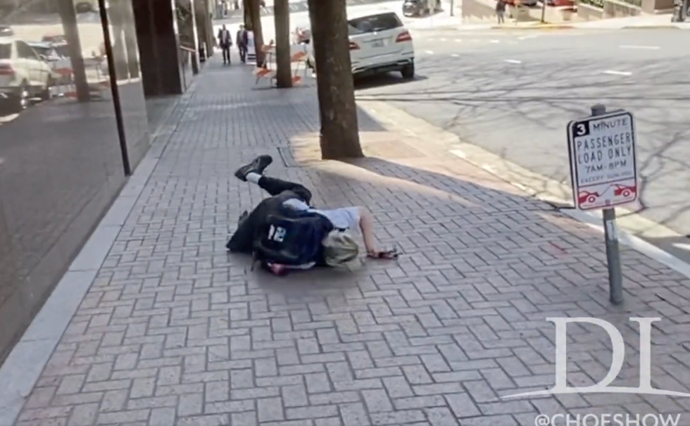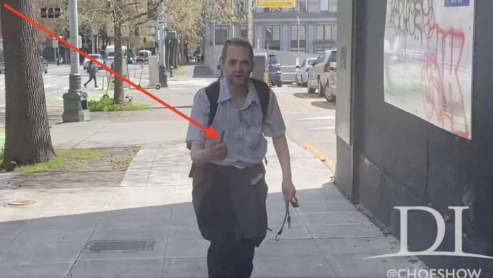 "I was doing my usual rounds, about to report some POSITIVE NEWS regarding the encampment sweep at 3rd Ave & Pike St this morning," Choe explained in text accompanying his Twitter video. "Mayor Bruce Harrell ... defending the corner from 'trap tents' that are set up consistently to sell drugs just a block away from City Hall. Most of these folks are not homeless people. Many live in the nearby [Downtown Emergency Service Center] buildings, hang out, and attract even more problems. As usual, I wanted to show the progress."