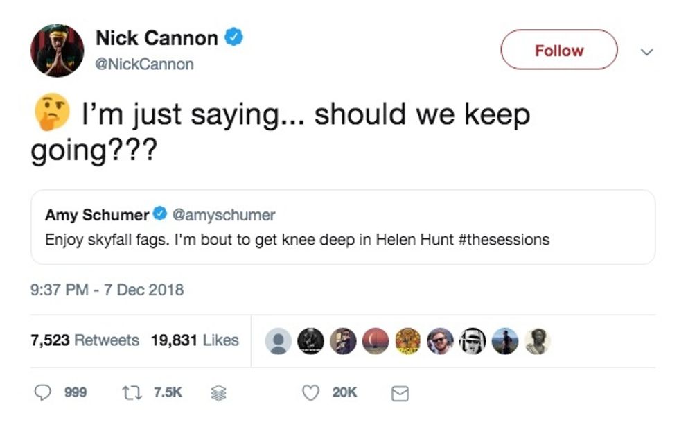 After Hart stepped down as Oscar's host — following controversy stemming from seemingly anti-LGBT tweets that Hart published in 2010 and 2011 — Cannon took to Twitter to point out the hypocrisy among some of Hart's critics, namely liberal comedians Sarah Silverman, Amy Schumer, and Chelsea Handler.