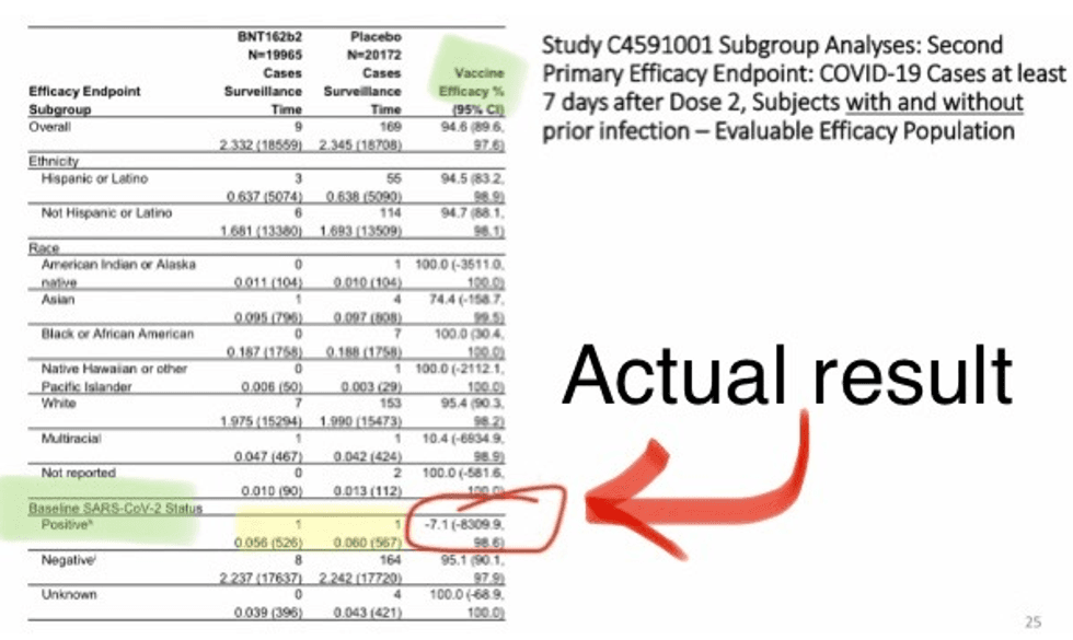 Massie told me he jumped out of his seat upon reading that line, because the CDC was in fact saying that the clinical trial on the Pfizer vaccine proved the vaccine to further advance immunity among those naturally infected just like it does for those without infection. Having already contracted the virus, Massie was appalled that the CDC, in this report and through other campaigns, would be suggesting that he take just as high a priority for the vaccine as someone who doesn't have any natural immunity.