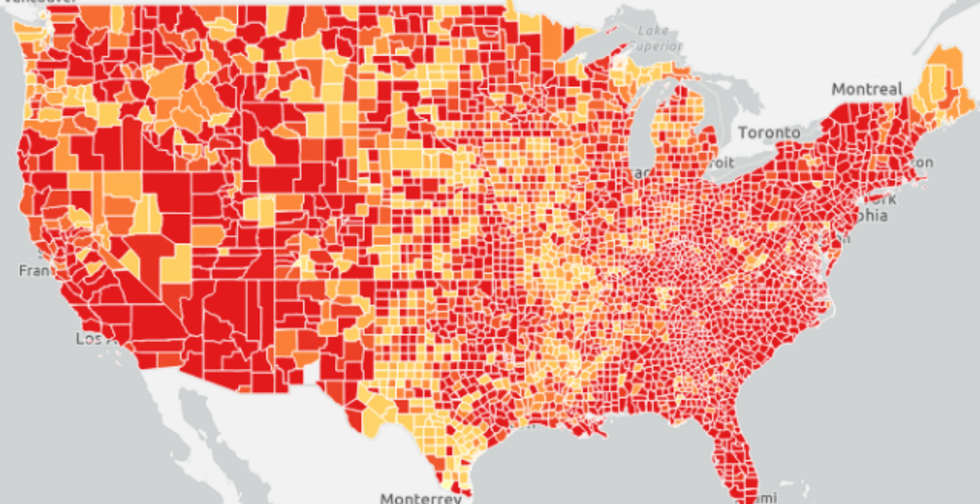 Remember that according to the CDC's current unscientific guidance, youth sports and extracurricular activities would be banned in all the red areas.