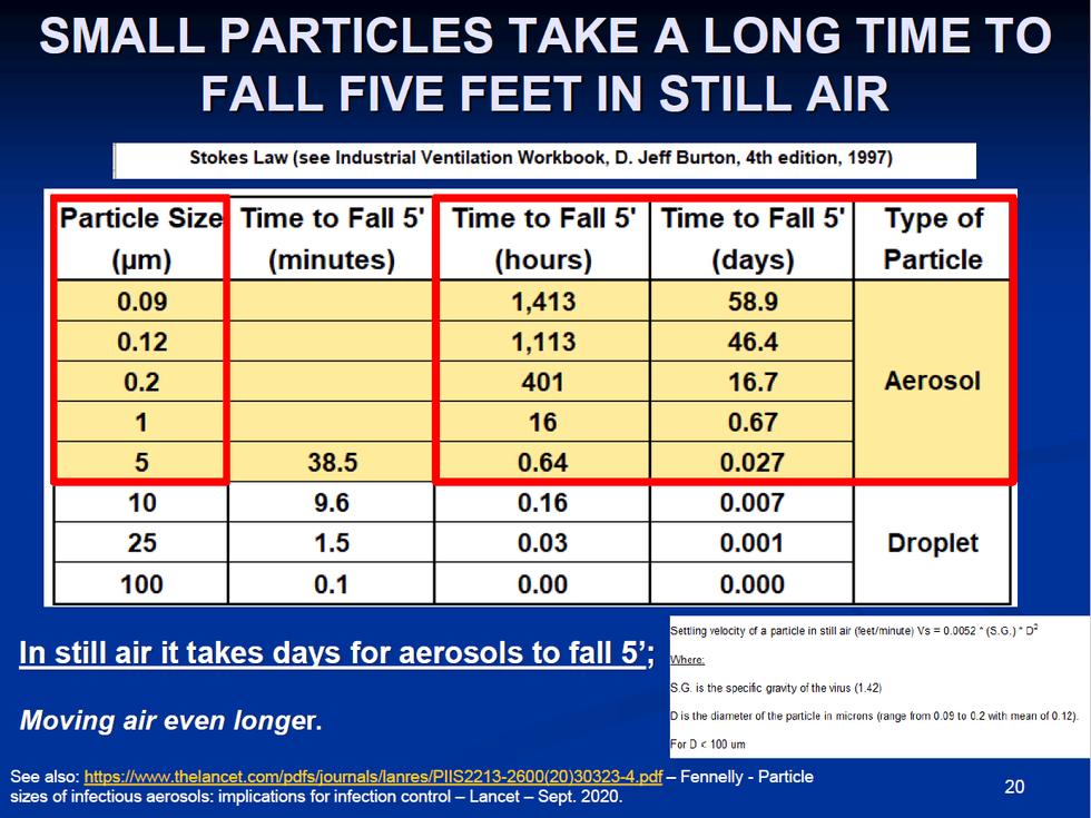 This is what everyone got wrong from day one, or perhaps what Fauci and others originally got right. The COVID conversation should have begun with minimum viable particle size under pressure, which for COVID-size particulates is .06 microns. 90% of exhaled particulates fall within the radically behaving particulate/airborne particulate range.