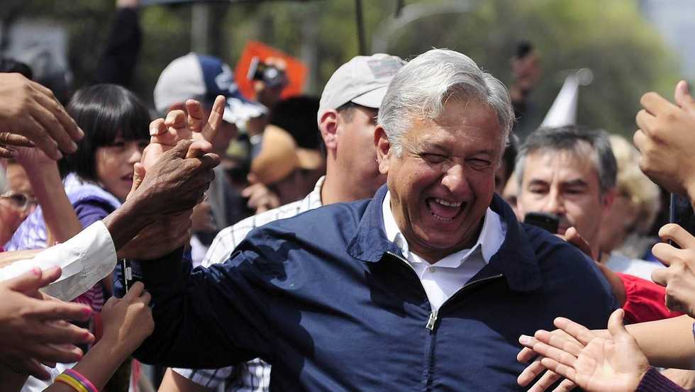 Mexico's leftist leader Andres Manuel Lopez Obrador is greeted by supporters during a political gathering to protest against the privatization of the state-owned oil company Petroleos Mexicanos (PEMEX), in Mexico City, on September 22, 2013. Lopez Obrador, who never recognized his defeat to Pena Nieto in the 2012 presidential election after claiming fraud, rejects plans by President Pena Nieto to overhaul the tax system and open the country's state-controlled oil industry to foreign investors. AFP PHOTO/Alfredo ESTRELLA (Photo credit should read ALFREDO ESTRELLA/AFP/Getty Images)