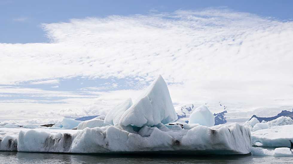 Iceland, iceberg in jokulsarlon lagoon drifting from vatnajokull glacier into the north atlantic ocean