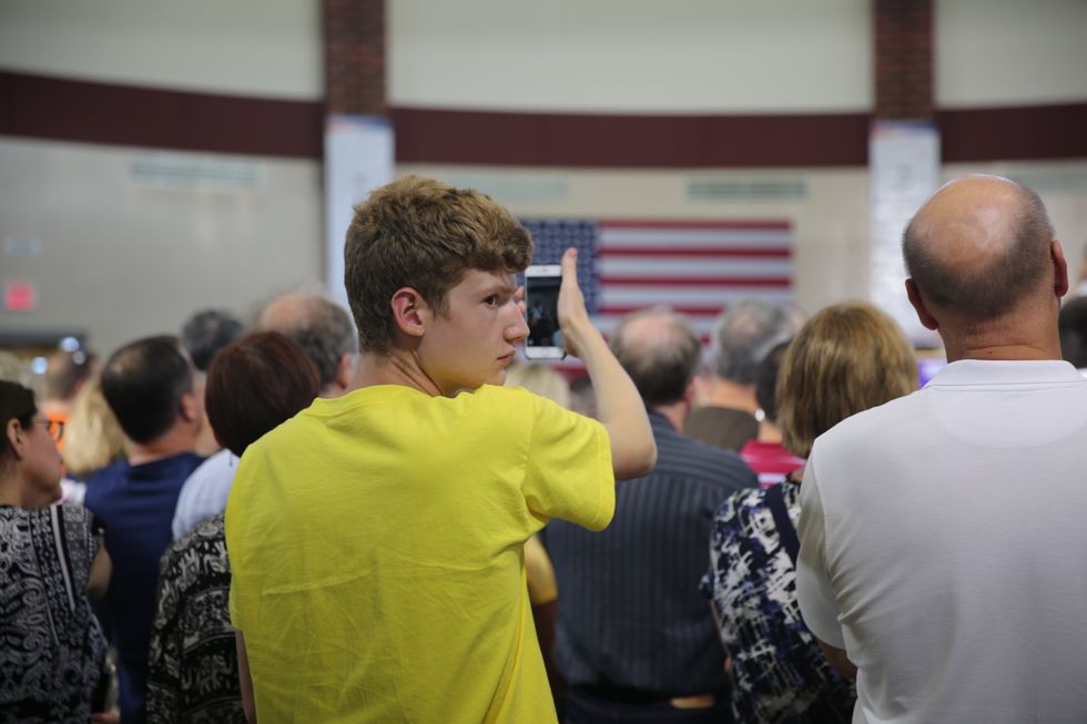 People of all ages had jammed into this marble-floor rotunda, the colonnaded hub of Valley Southwoods Freshman High School. Something like the Ancient Greek agora, the open area where everyone gathered.