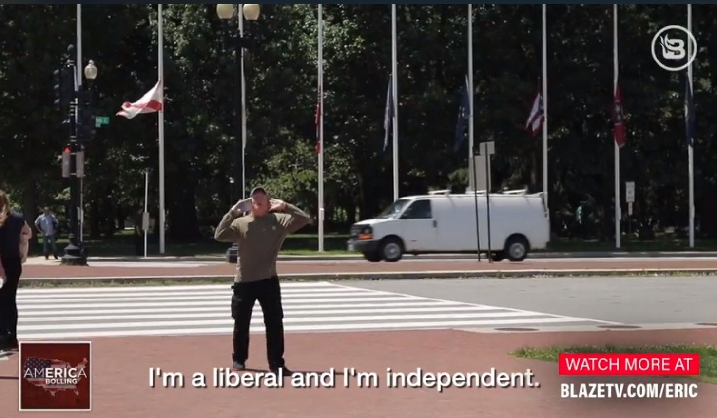 In this episode of "America with Eric Bolling," Eric was mid-interview with gun expert John Lott Jr. in Washington, D.C., when an "open-minded liberal" interrupted with a profanity-laden rant about "gun owners." But when Eric turned to give the man an opportunity to make a coherent argument against legal gun ownership, he couldn't seem to get away fast enough -- though he did manage to continue his vulgar tirade from a distance.