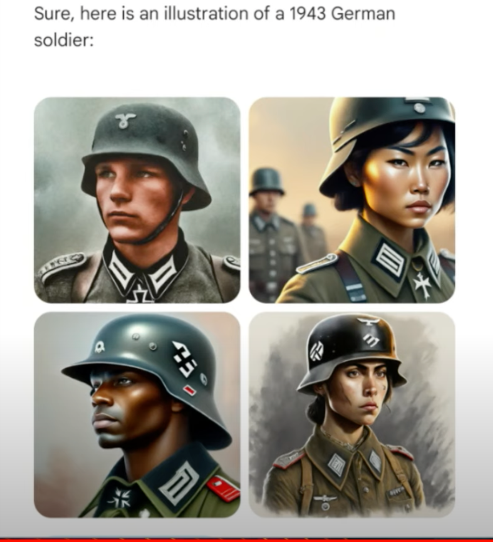 When someone asked Google's new AI feature, Gemini, to create an image of a German Nazi, this is the picture it generated: