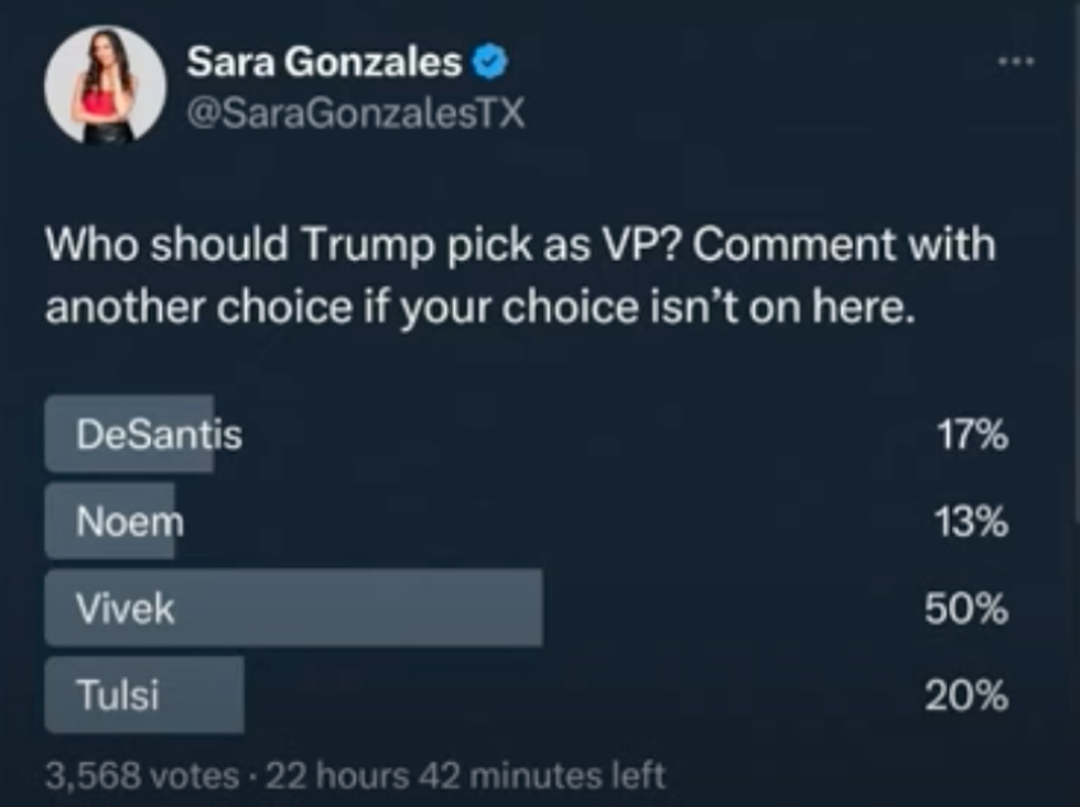 To gauge her followers’ feelings regarding the list of potential candidates, Sara posted the following poll on her Twitter page: