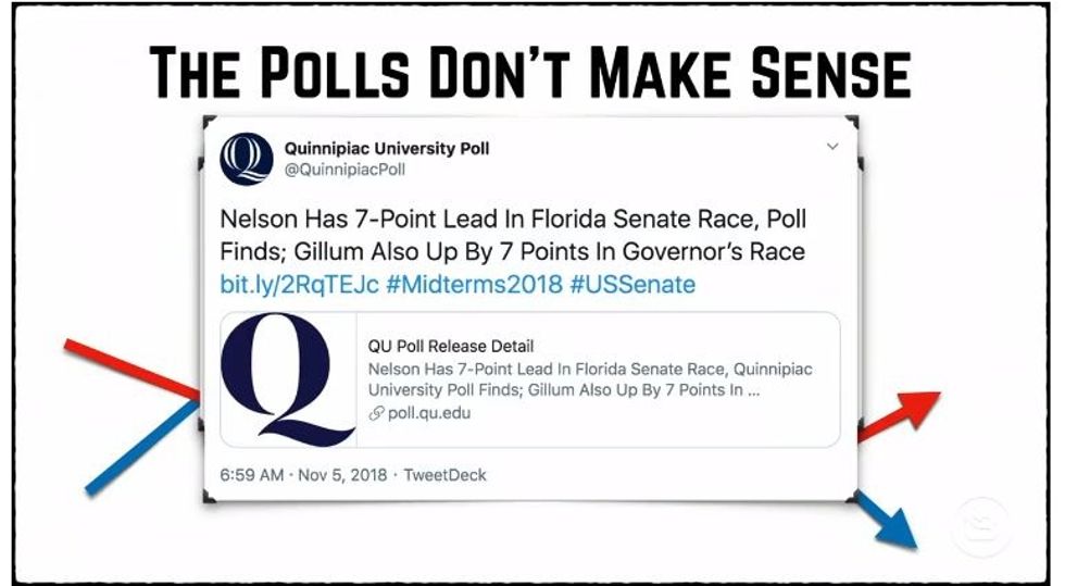 Moving on to a 2018 tweet, Quinnipiac, a B+ rated poll by FiveThirtyEight, polled Florida Democrats Bill Nelson and Andrew Gillum with a 7-point lead in the midterm elections. Gillum lost to Trump supporter Ron DeSantis, a former congressman, that year.