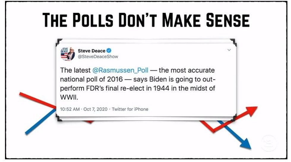 He went on to cite the latest Rasmussen poll, the most accurate poll in 2016, predicting that Joe Biden will outperform Franklin D. Roosevelt's final re-election campaign in 1944. For context, in 1944 FDR was in the middle of winning World War II and was arguably the most most popular president since George Washington.
