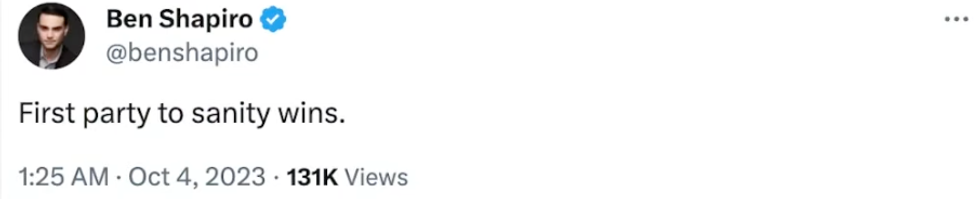 Shapiro points out the very thing we’re sorely lacking in this country – sanity.