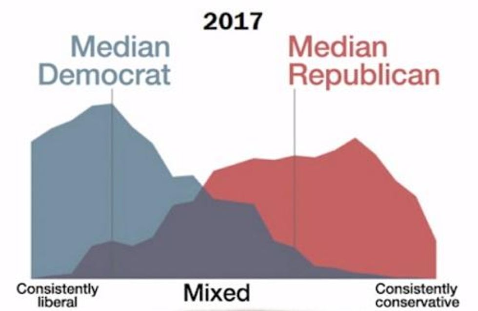 The average Republican is now more conservative than 94 percent of Democrats. The average Democrat today is more liberal than 92 percent of Republicans.
